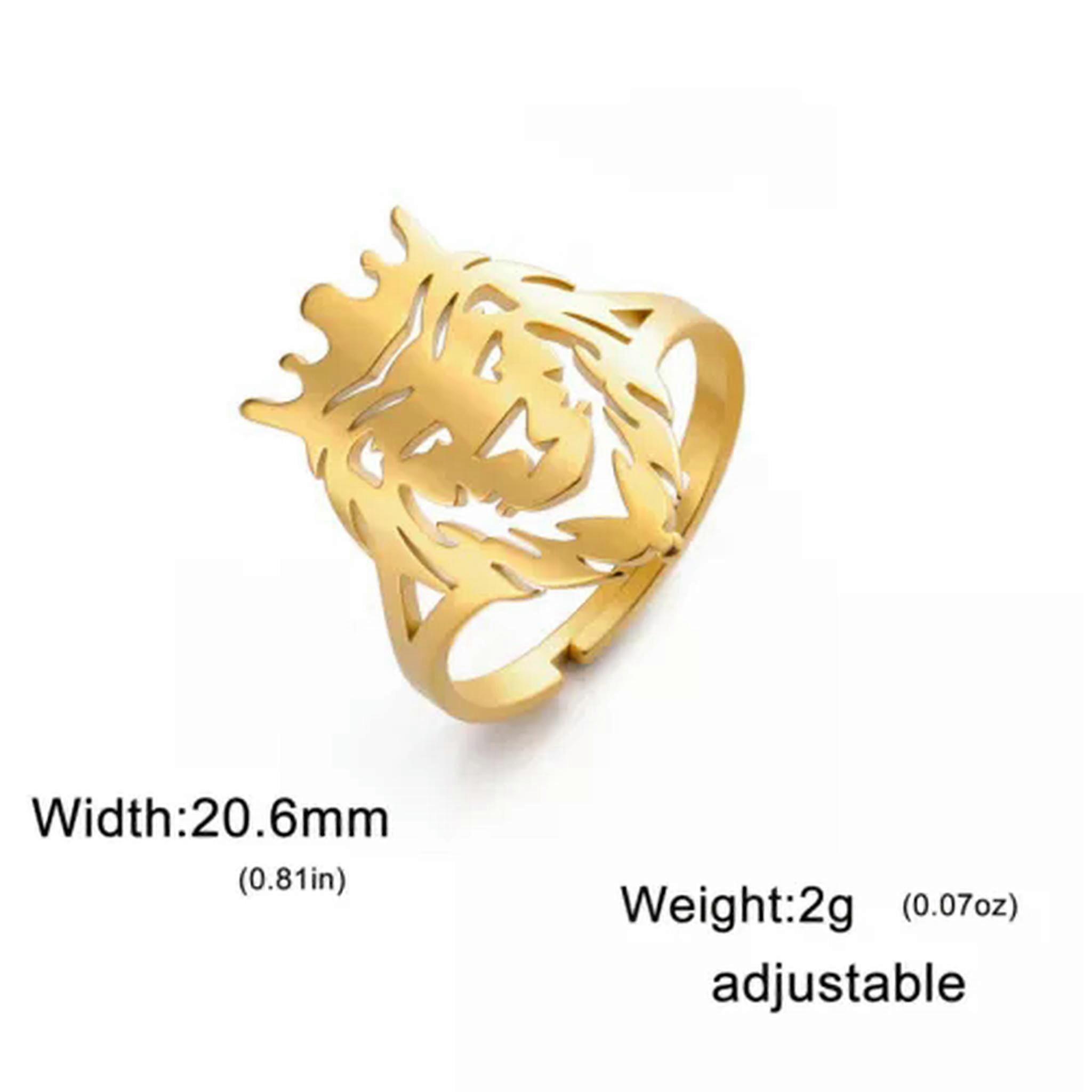 RSAMD Crown Lion Ring Stainless Steel Open Adjustable Animal Finger Ring Jewelry Gift-Resizable-Gold