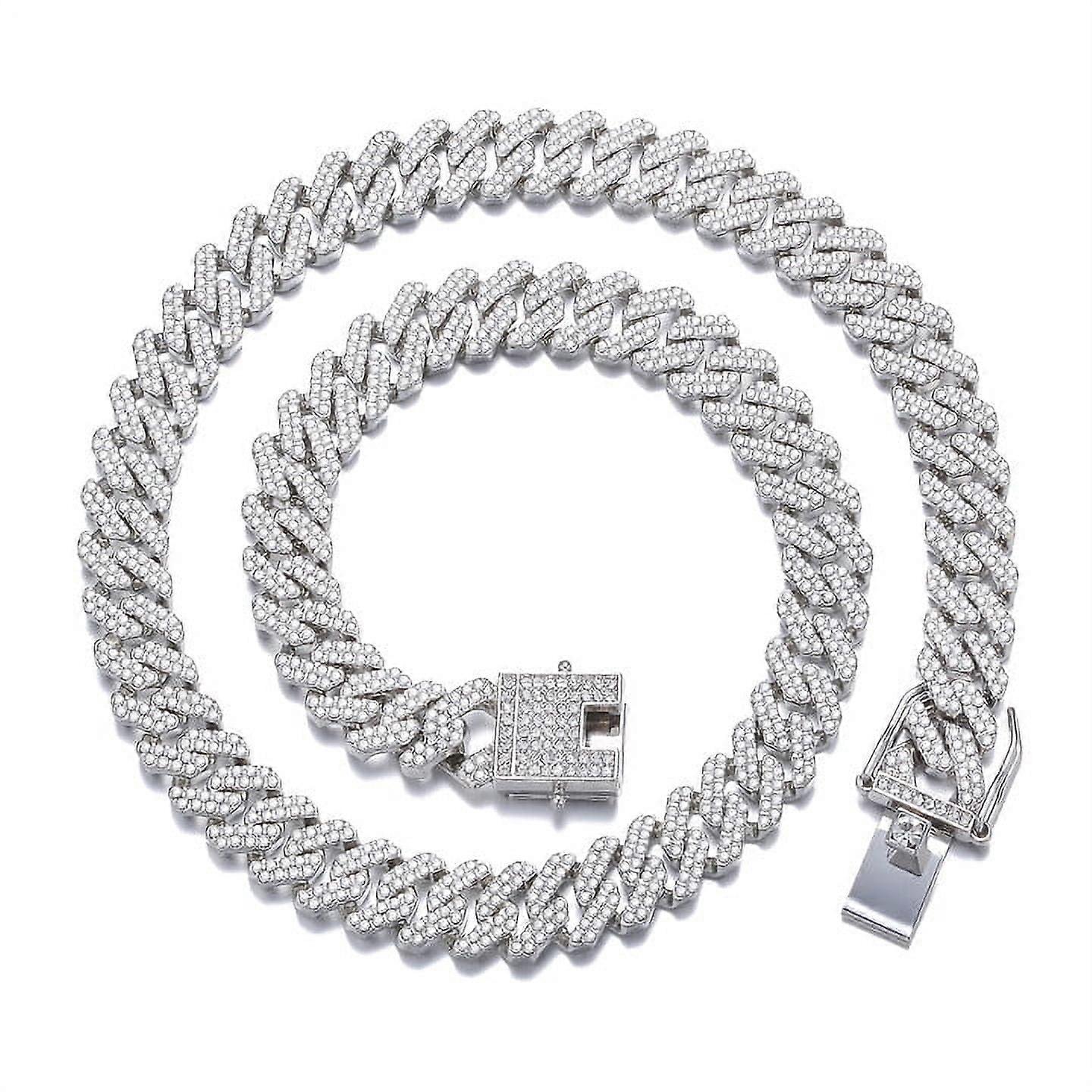 Cuban Link Chain for Mens, Iced Out Miami Cuban Necklace Bling Diamond Hip Hop Jewelry for Women,Silver, 20in
