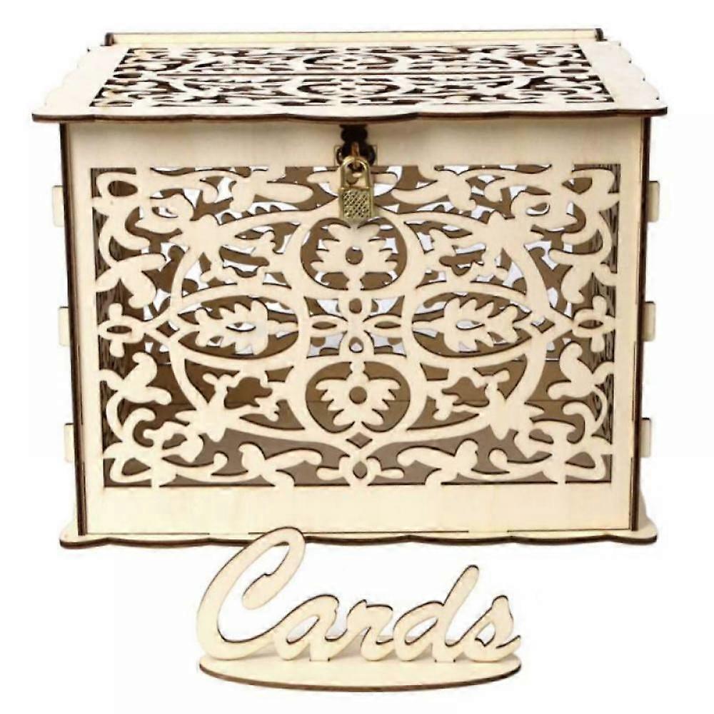 Wedding Money Box Holder with Sign, Large Rustic Wood DIY Envelop Gift Card Box with Lock Slot for Parties (Four Leaf Clover,S)
