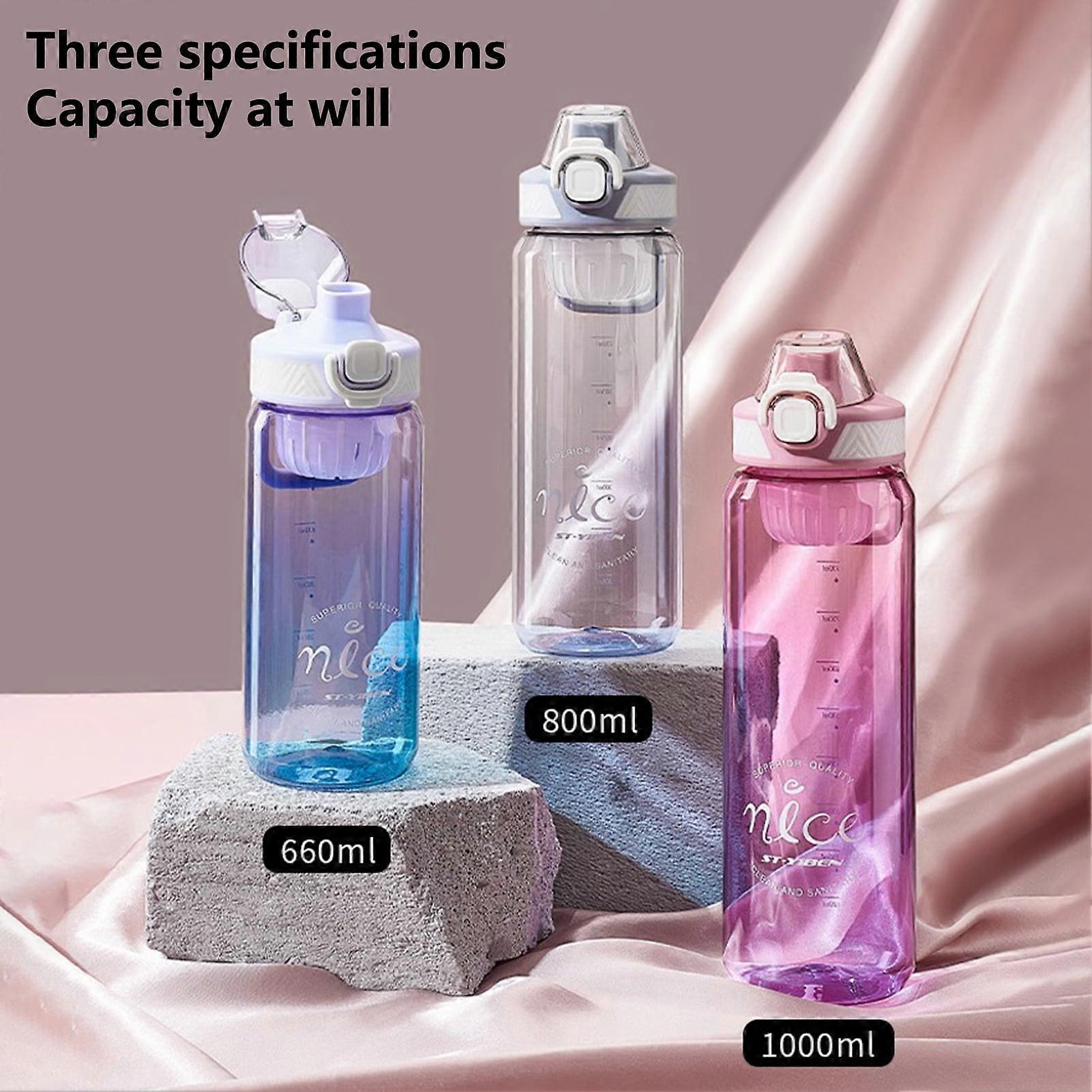 Hesroicy 660ML/800ML/1000ML Sports Water Bottle Leakproof, High Temp Resistant, Large Capacity, Clear Scale, with Handle
