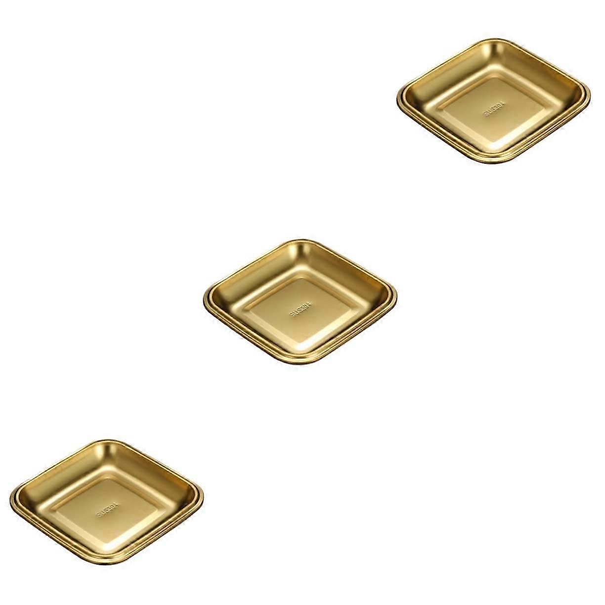 Stainless Steel Food Tray with Dipping Sauce Cups, Rustproof Appetizer Serving Set 15x15CM 3pcs Gold