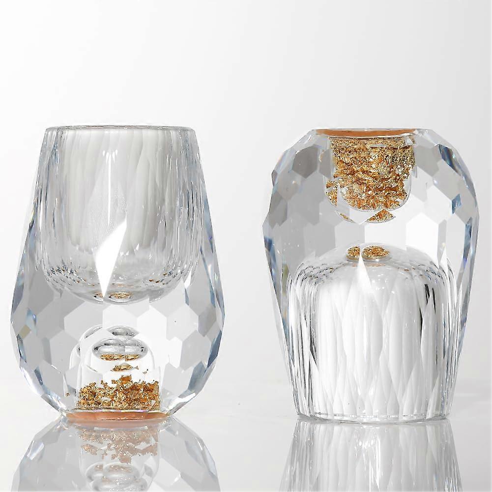 Handmade Crystal Shot Glasses Set 0.5oz with 24K GoldPlated Base, Lead, GiftBox, 2PCS