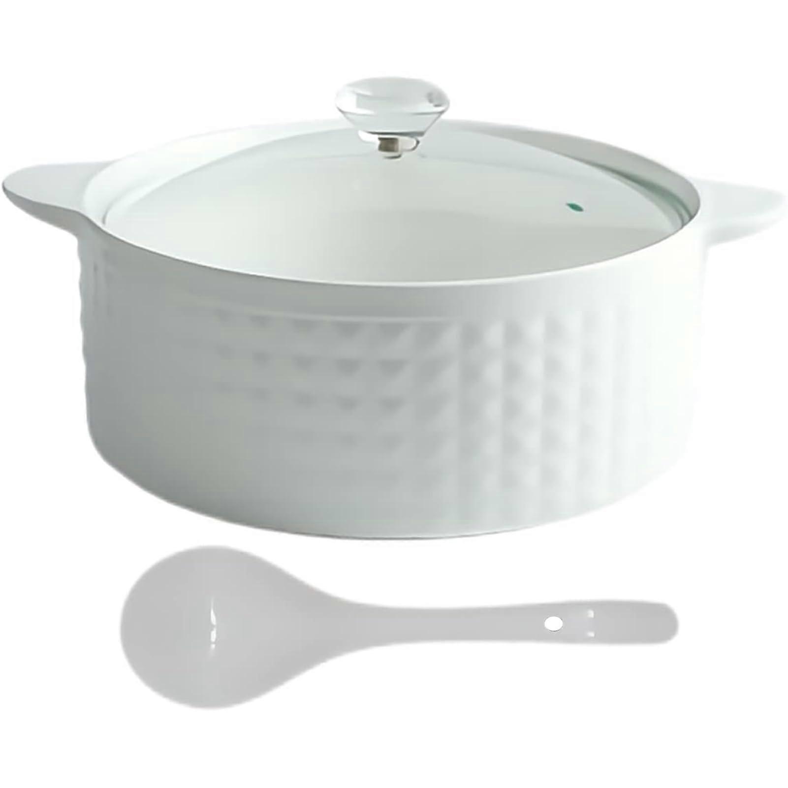 Ceramic Soup Tureen with HeatRetaining Glass Lid, White Porcelain, Microwave Dishwasher Safe
