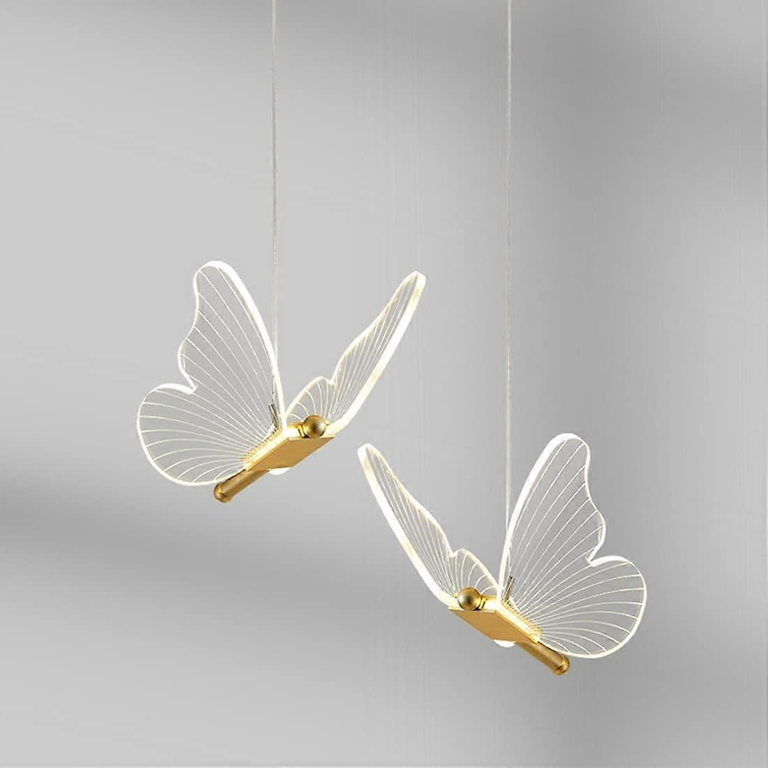 Butterfly Pendant Light Gold Acrylic Chandelier for Girls Bedroom Dimmable LED Ceiling Fixture 2 Lights