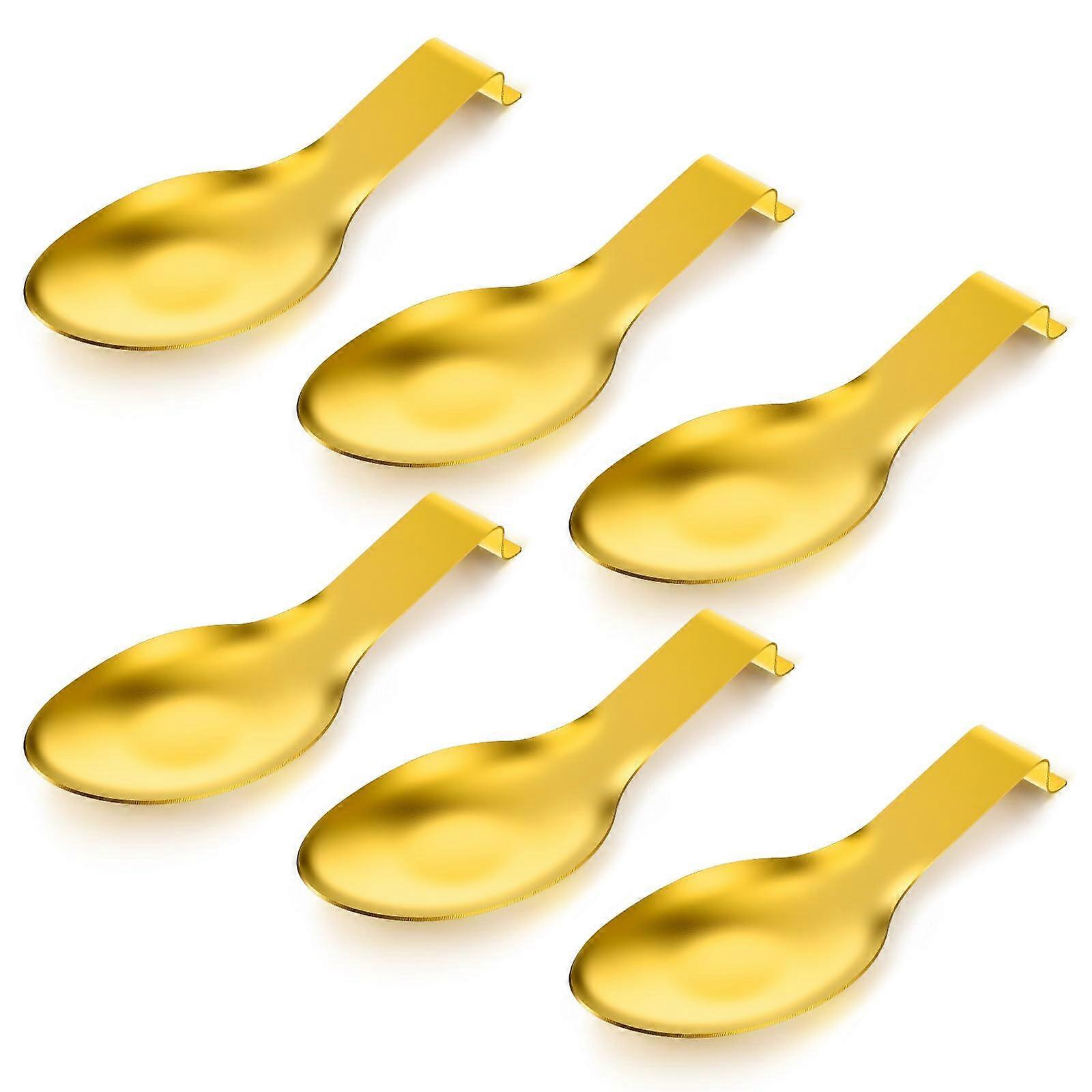 6 Pack Stainless Steel Spoon Rest and Gold Kitchen Utensil Holder, Large Heat Resistant Base, Dishwasher Safe, 9.85 x 3.74 Inch
