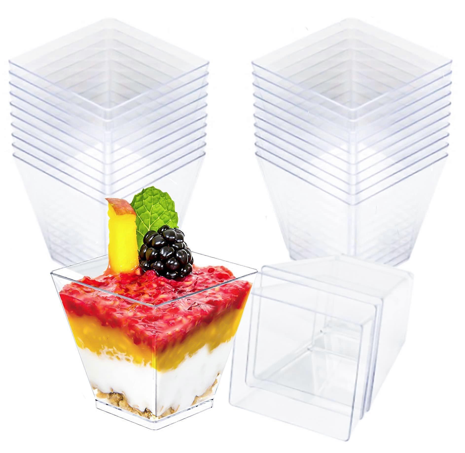 Dessert Cups 2 oz Clear Square Plastic Shot Glasses Pack of 40 for Elegant Party Serving