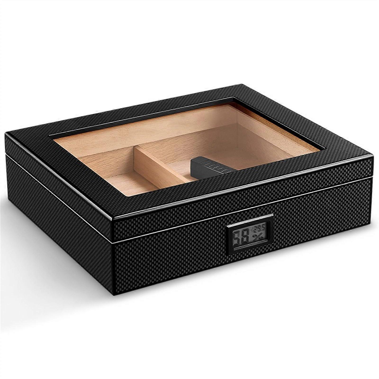 Cigar Humidor Travel Cedar Carbon Fiber Case with Hygrometer and Humidifier for Luxury Storage