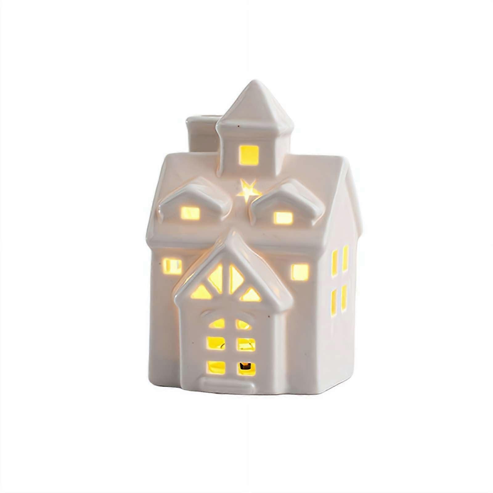 Light Up Ceramic Christmas Village House with Soft LED Glow, White Glazed Winter Holiday Decor 1pcs