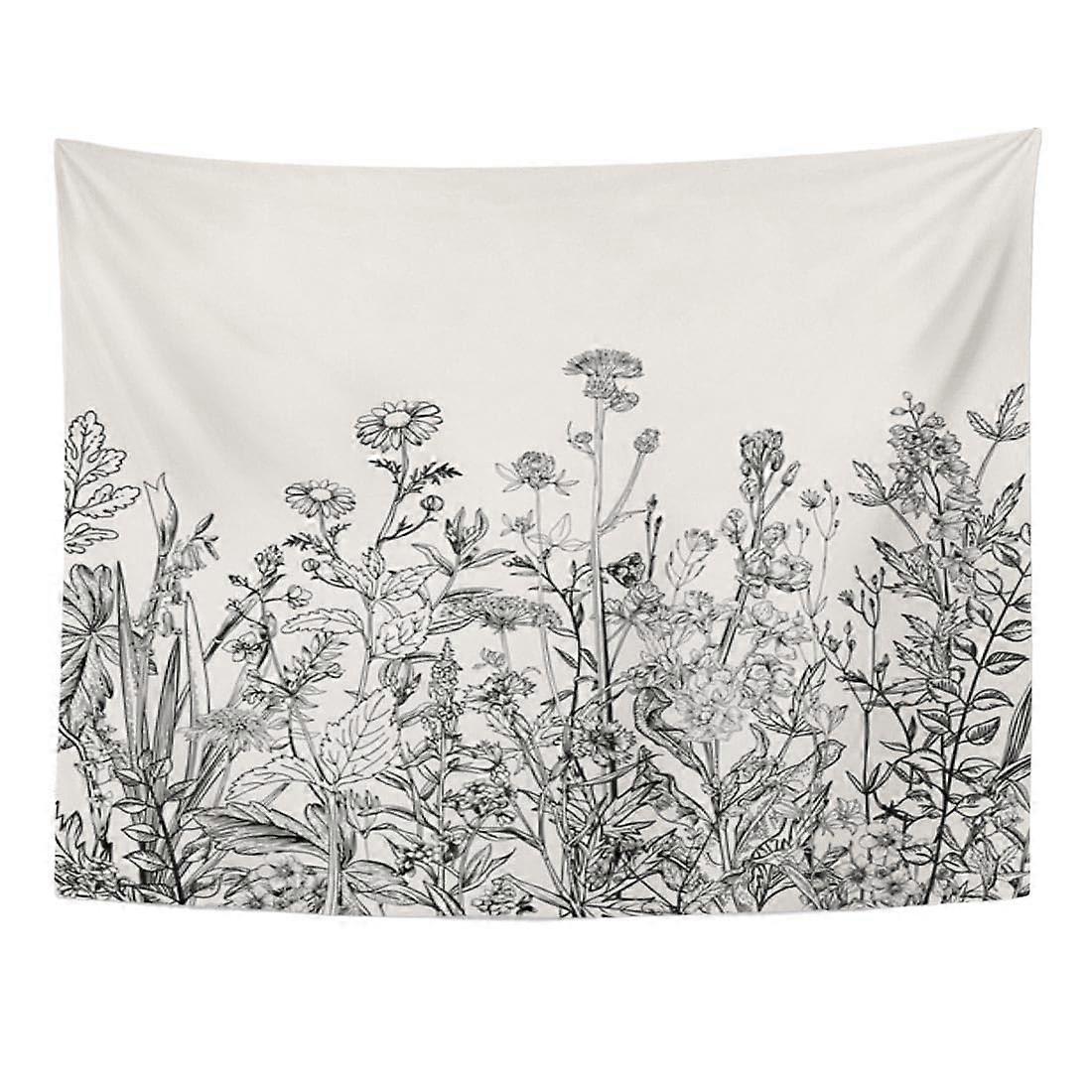 Tapestry Wall Hanging Black and White Floral Botanical Print 50x60 Inch for Living Room Bedroom