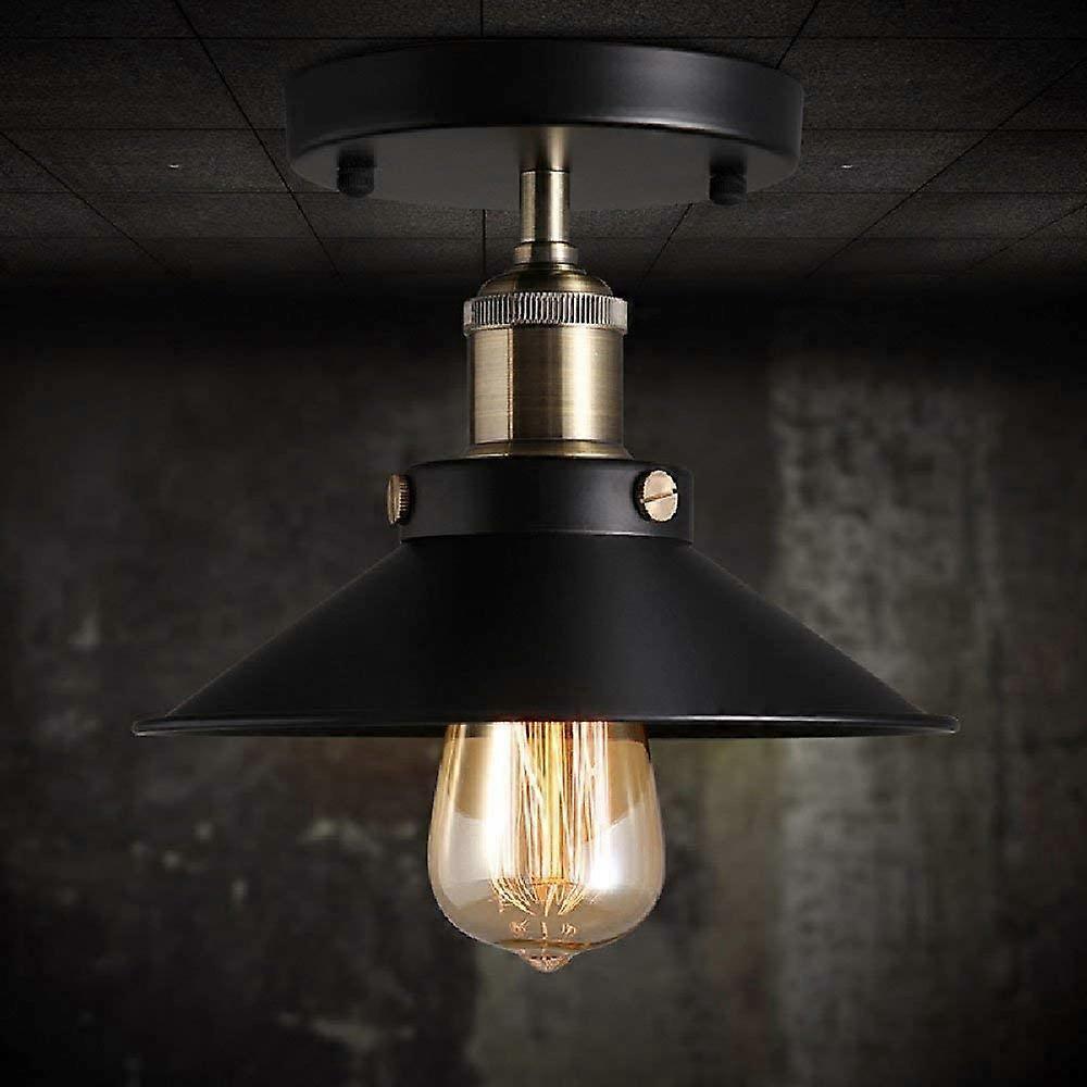 Retro Industrial LED Ceiling Light Fixture, Black Metal Semi Flush Mount for Kitchen Island