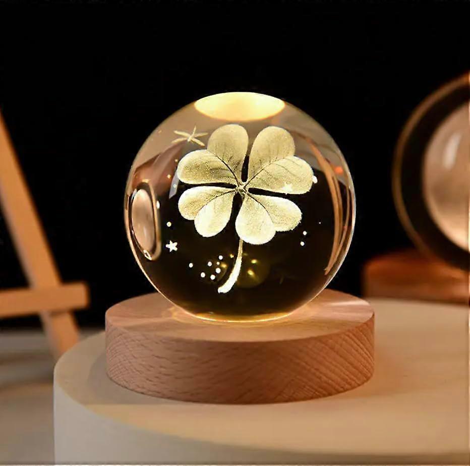 8cm Crystal Ball Lamp with Wooden Base, USB Powered 3D Laser Engraved Night Light for Bedroom Decor