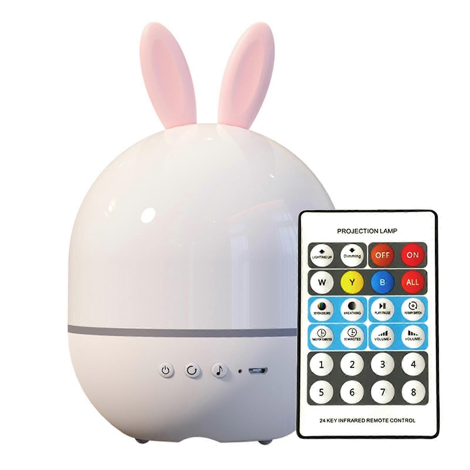 Bunny Star Projector Night Light for Kids Room, Rotating LED with 8 Music Modes and 6 Films, USB Rechargeable