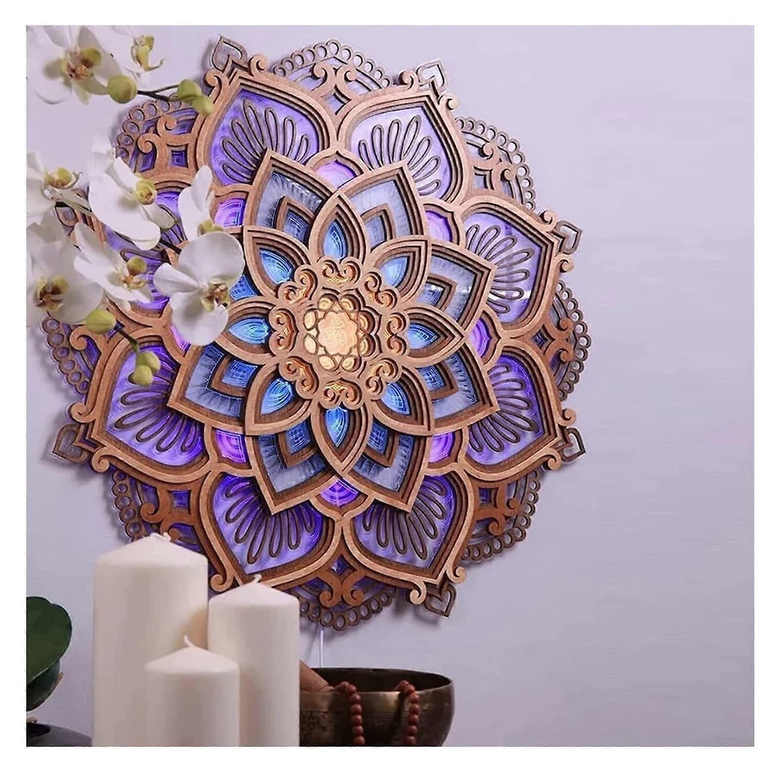 Mandala Wall Light with Calming Ambient Lighting, Acrylic Lotus Decor for Yoga Room or Bedroom