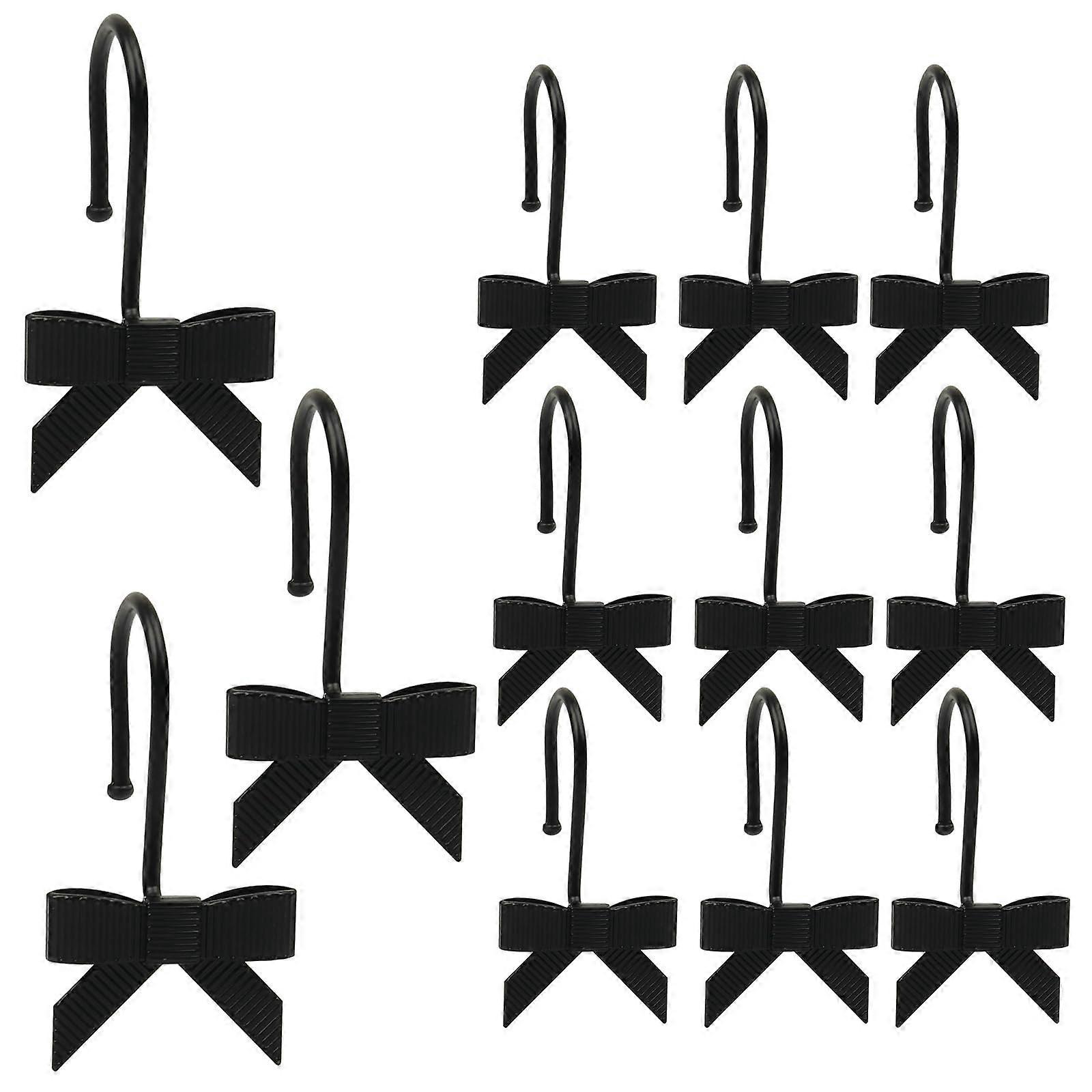 Black Bow Shower Curtain Hooks Set of 12, RustResistant Metal Decorative Rings for Bathroom