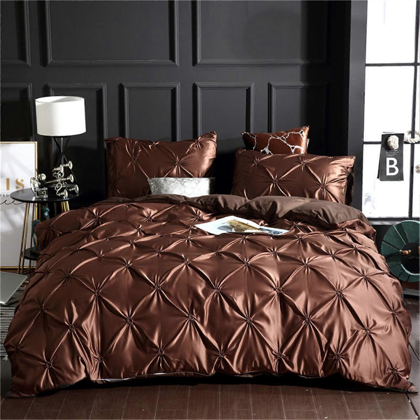 Satin Duvet Cover Set King Size with Pillowcases, Luxury Breathable Silk Bedding, Brown 220x240cm