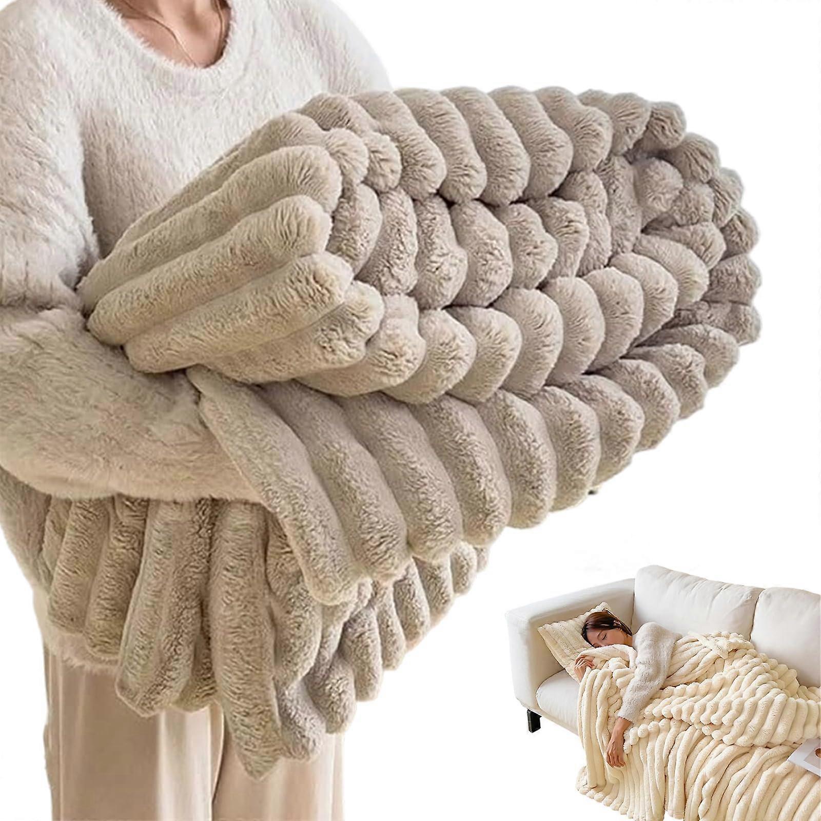 Plush Throw Blanket Ultra Soft Rabbit Flannel Oversized for Sofa Bed Office Travel Khaki 79x91in