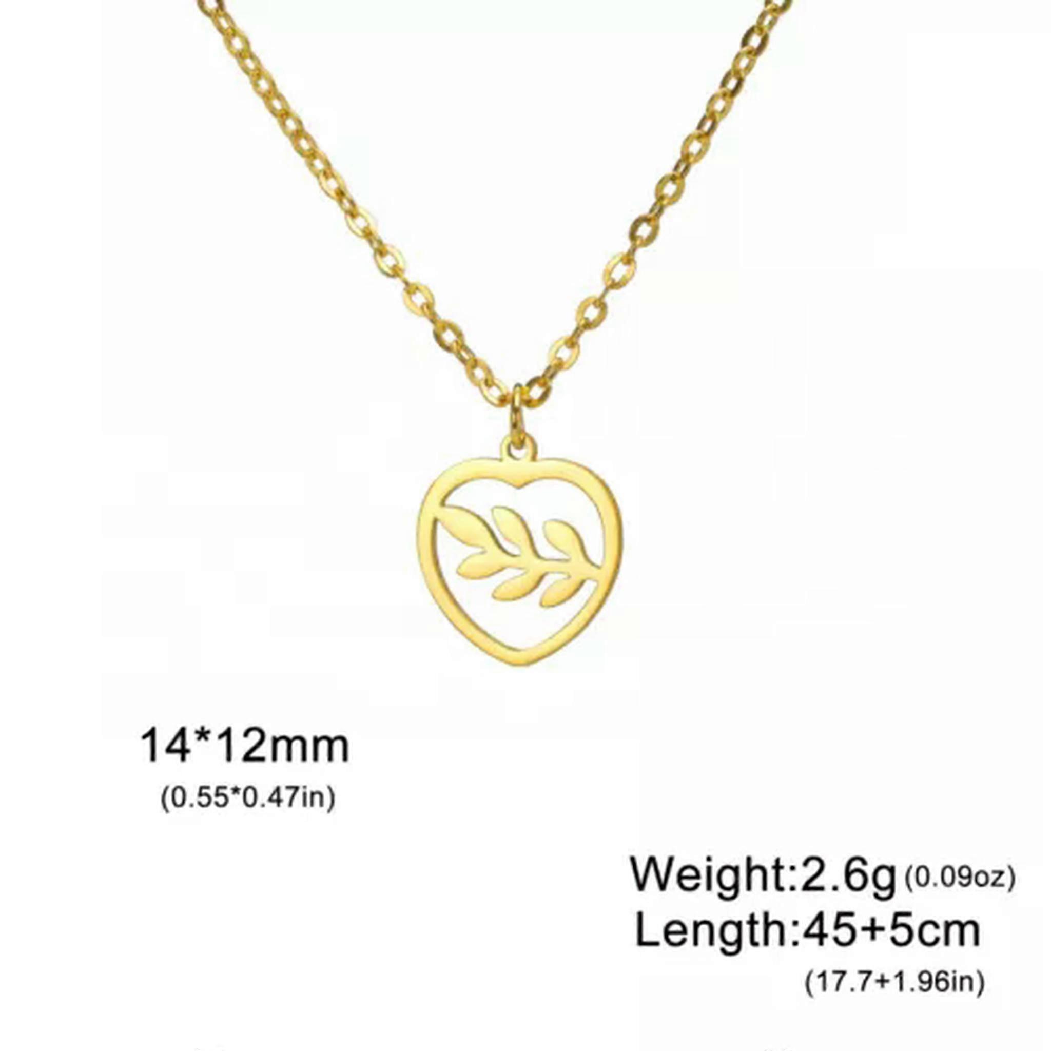 RSAMD Leaves Round Pendant Necklace Women Girl Stainless Steel Choker Bohemian Jewelry-45-50cm-Heart Gold Color