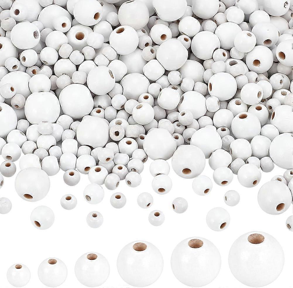 760Pcs 6 Sizes White Wooden Beads, Natural Round Craft Beads, Large Hole Loose Spacer Beads for DIY Jewelry, Garland, Decor