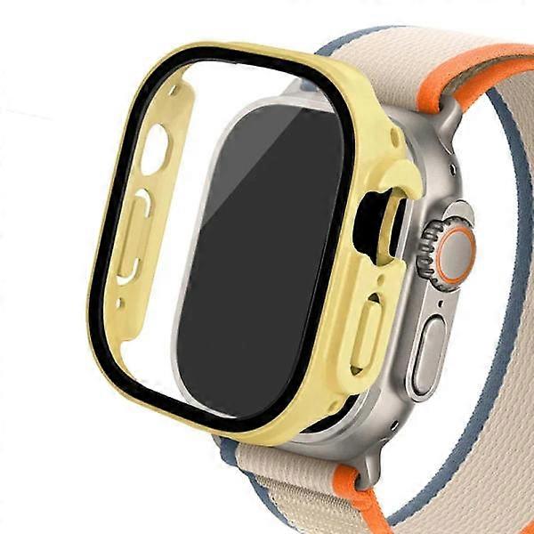 Glass+Case for compatible with Apple Watch Ultra 2, 49mm, PC Bumper + Tempered Screen Protector, Smartwatch iWatch Series Bracelet Accessory, Yellow