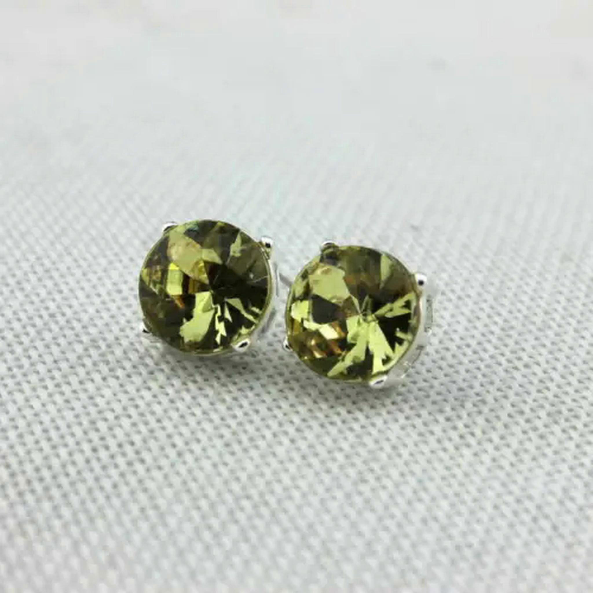 RSAMD Silver Plated 1.5cm Faceted Round Glass Crystal Dot Stud Earrings Women Jewelry-Lemon