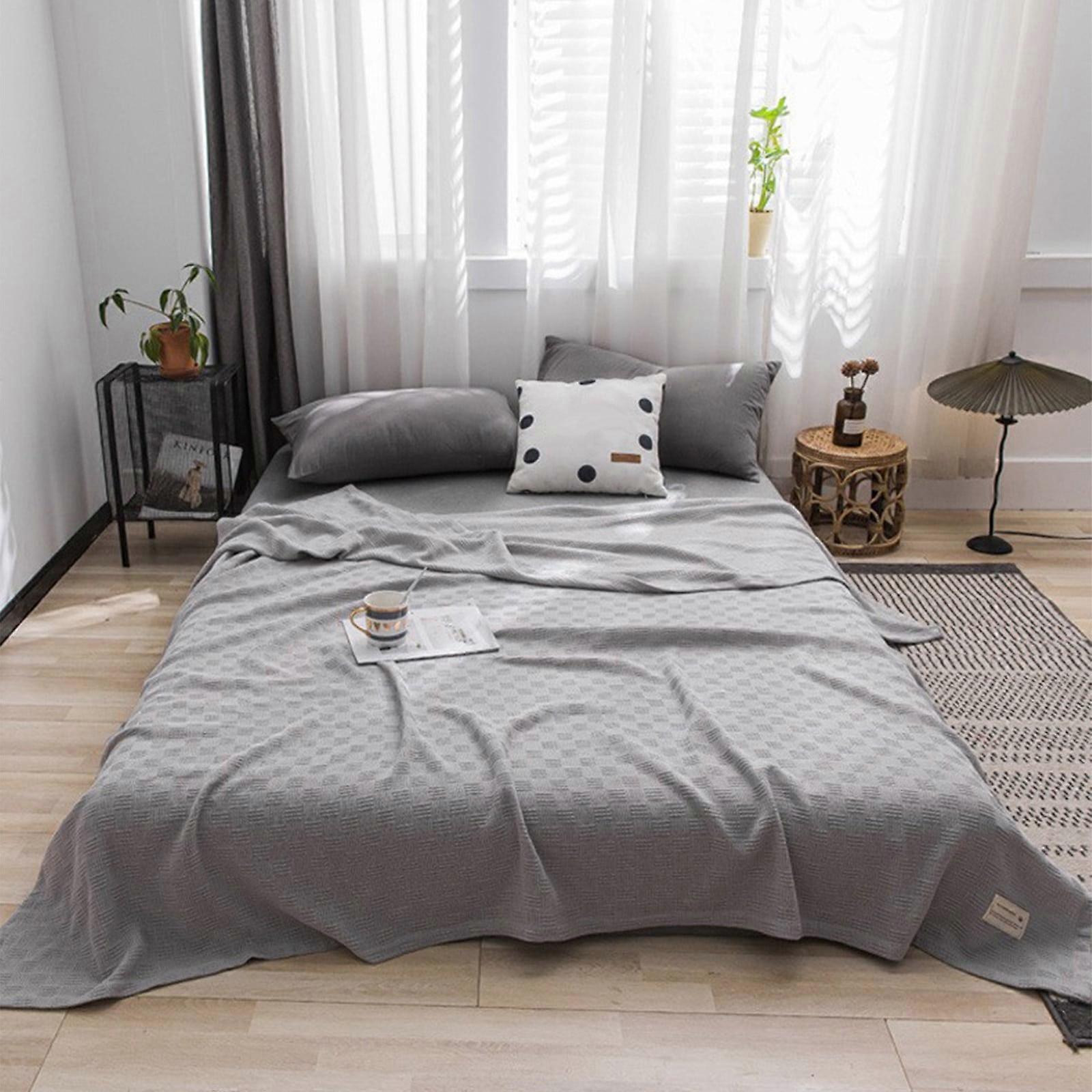 Wrjufa Cotton Thermal Blanket Twin, Lightweight Soft Breathable All-Season Bed Throw, Easy to Wash Gray
