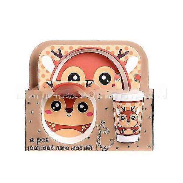 Creative New Bamboo Fiber Children's Dinnerware Set Five Piece Set Preschool Baby Square.deer Five.piece.set.with.box