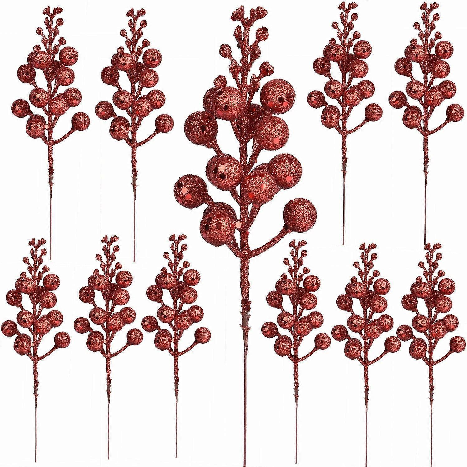 20 Pack Artificial Glitter Berry Stems, 7.8" Fake Christmas Picks Compatible with Christmas Tree DIY Wreath Crafts, Holiday Home Decor