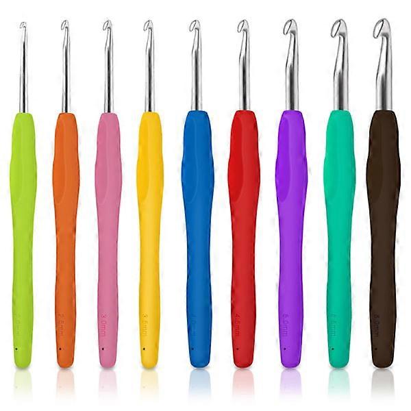Crochet Hooks Set, 9pcs Aluminum Crochet Hooks Soft Grip Handle, Crochet Hook Crochet Kit Suitable for Beginners Adults (2.0mm-6.0mm)