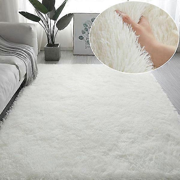 Fluffy Rainbow Rugs for Kids Rooms Soft Rya Rugs Living Room Children Baby Room Nursery Playroom Cute Interior Rug White-FD11- White 100x160cm