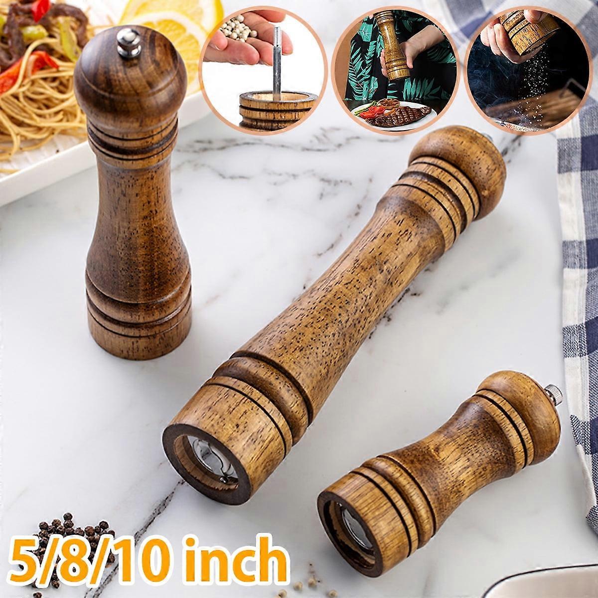 Grusce Premium Wooden Salt & Pepper Grinder Set, Refillable with Adjustable Coarseness, Oak Ceramic Mechanism (5/8/10 inch)