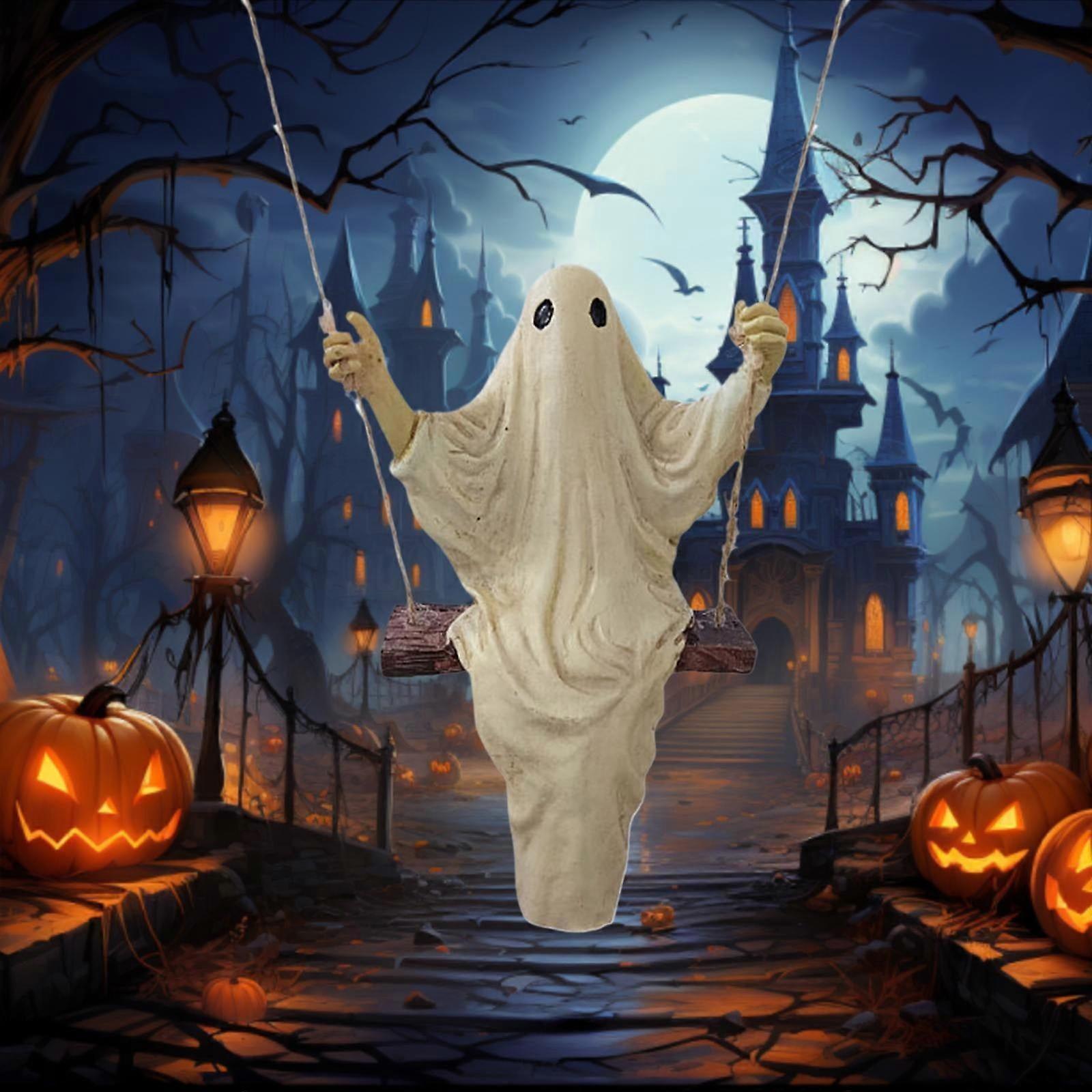 Yakbaofuo Resin Candle Holder Figurines, Compatible with Halloween & Christmas Decor, Cute Swing Pendant Sculpture for Home, Tabletop, Garden