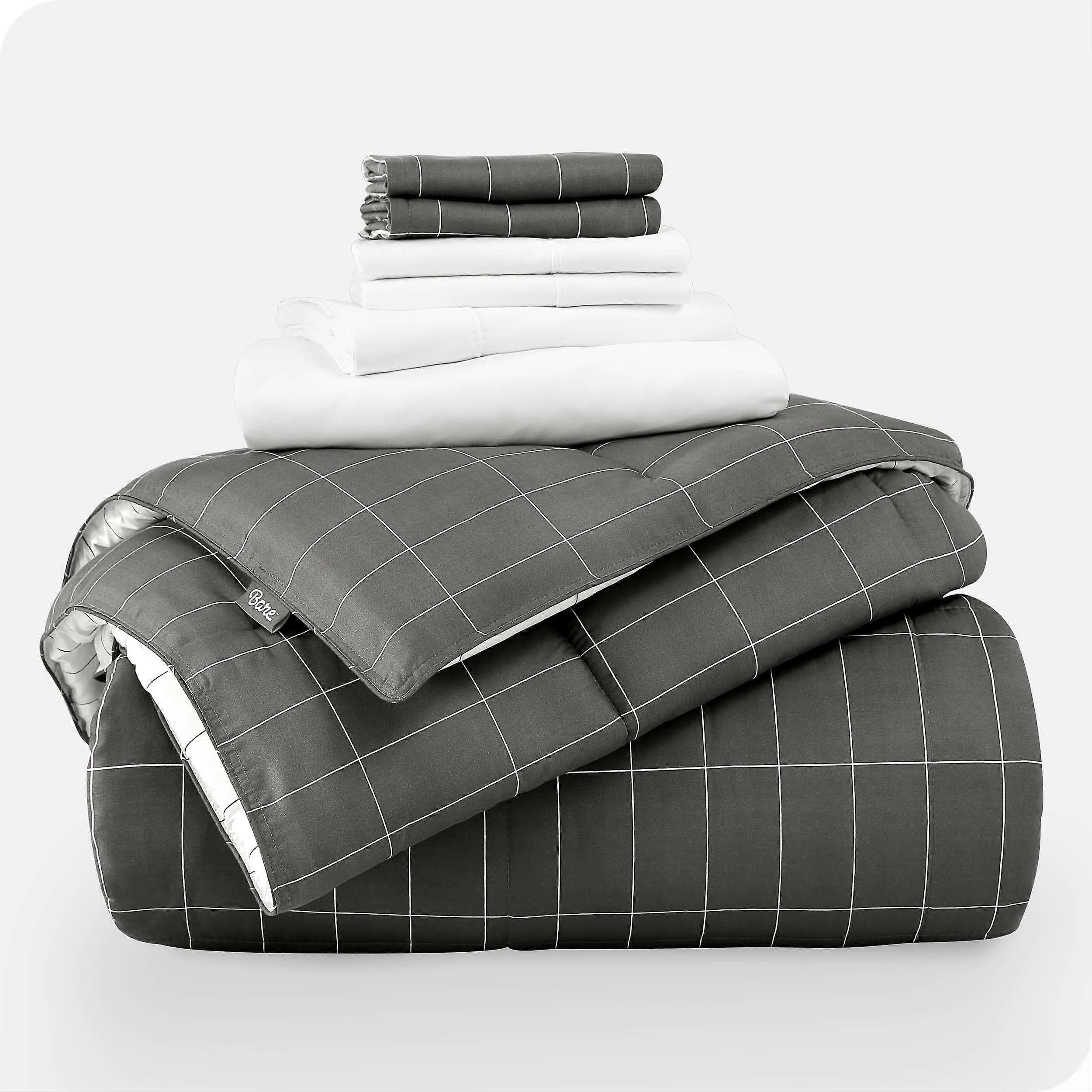 Bare Home 7-Piece Bed-in-a-Bag - Queen, Grid - Gray/White with White Sheet Set