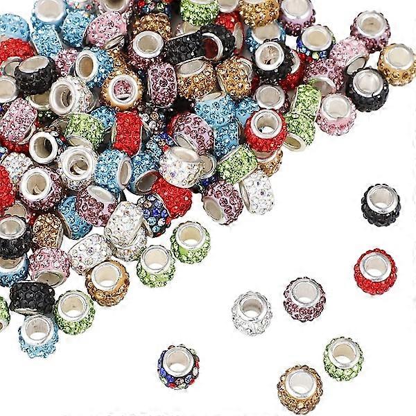 Package Includes: Each pack contains 100 pieces of colored beads, enough for multiple jewelry projects and to meet your different usage needs. Material: This product is made of polymer clay and rhinestone, which is sturdy, durable, shiny and has a glossy finish, ensuring long-lasting beauty. Multi-color design: The round beads with large holes come in ten different colors, vibrant and exquisite, which adds uniqueness to the jewelry and allows you to create your favorite styles. Sizes: The product has a diameter of 12mm/0.47inch, suitable for various jewelry making needs, meeting different customers' needs. Feature: Wide applications: These beads are suitable for making bracelets, necklaces, earrings, anklets and various other accessories. They can also be used to make key chains, phone charms and other crafts. Specifications: Color: Multicolor Size: 12 mm/0.47 inch Material: polymer clay and rhinestones Package includes: 100 pcs large hole beads