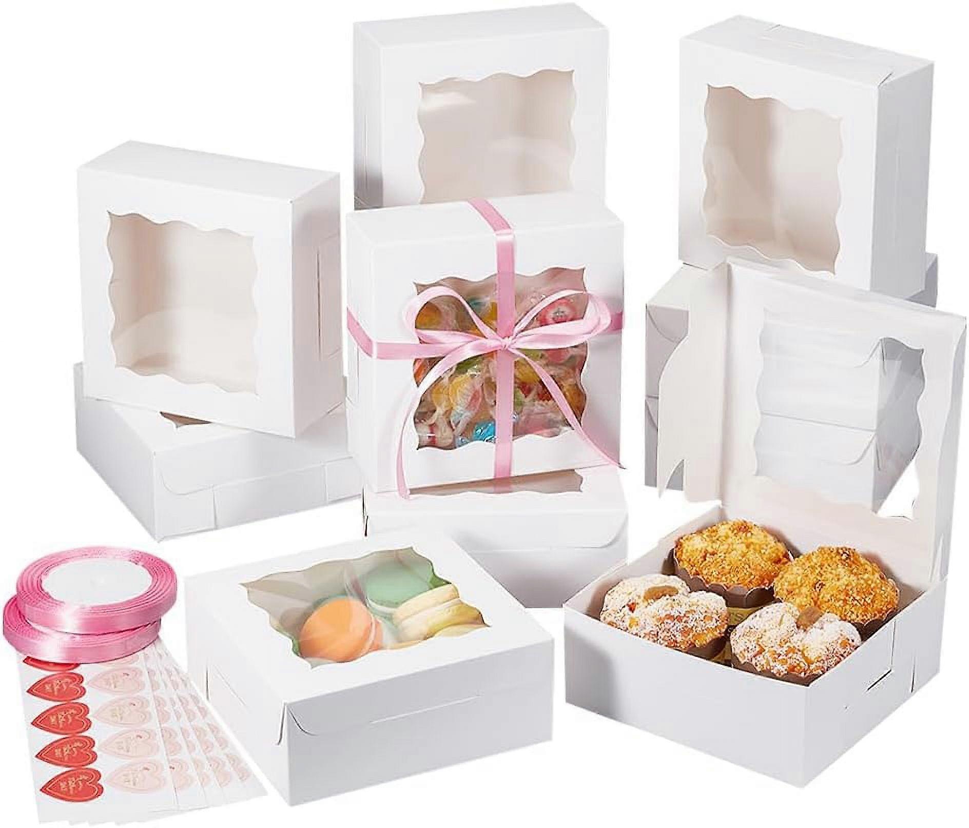 12 Pcs Mother's Day Paper Gift Boxes 5.9x5.9x2.4 inch with Clear Window, 50 Heart Stickers & 2 Polyester Ribbons for Cake, Candy Wrapping