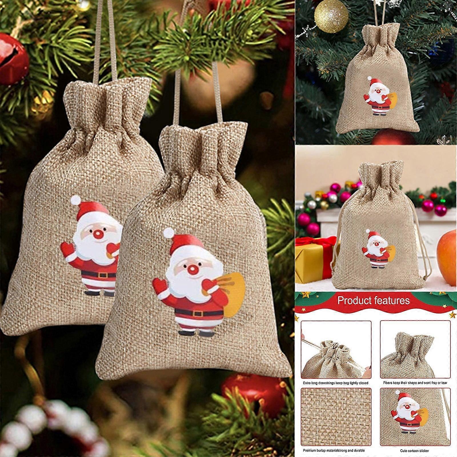 Yakbaofuo Bag Candy Bag Printed Bag Linen 10PC Christmas Santa Gift Backpack Housekeeping Organizers Home Textile Storage