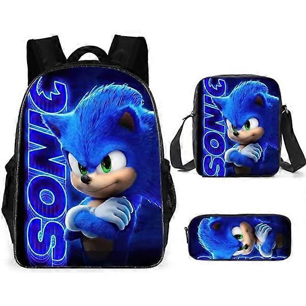 SONIC backpack Sonic elementary school backpack 3-piece anime cartoon backpack shoulder bag pencil bag Style D three-piece