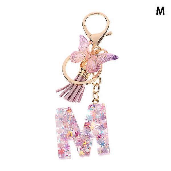 1 pc AZ letters keychain for women tassel butterfly pendant Ini M