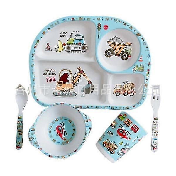 Creative New Bamboo Fiber Children's Dinnerware Set Five Piece Set Preschool Baby Rectangular.Excavator Five.piece.set.with.box
