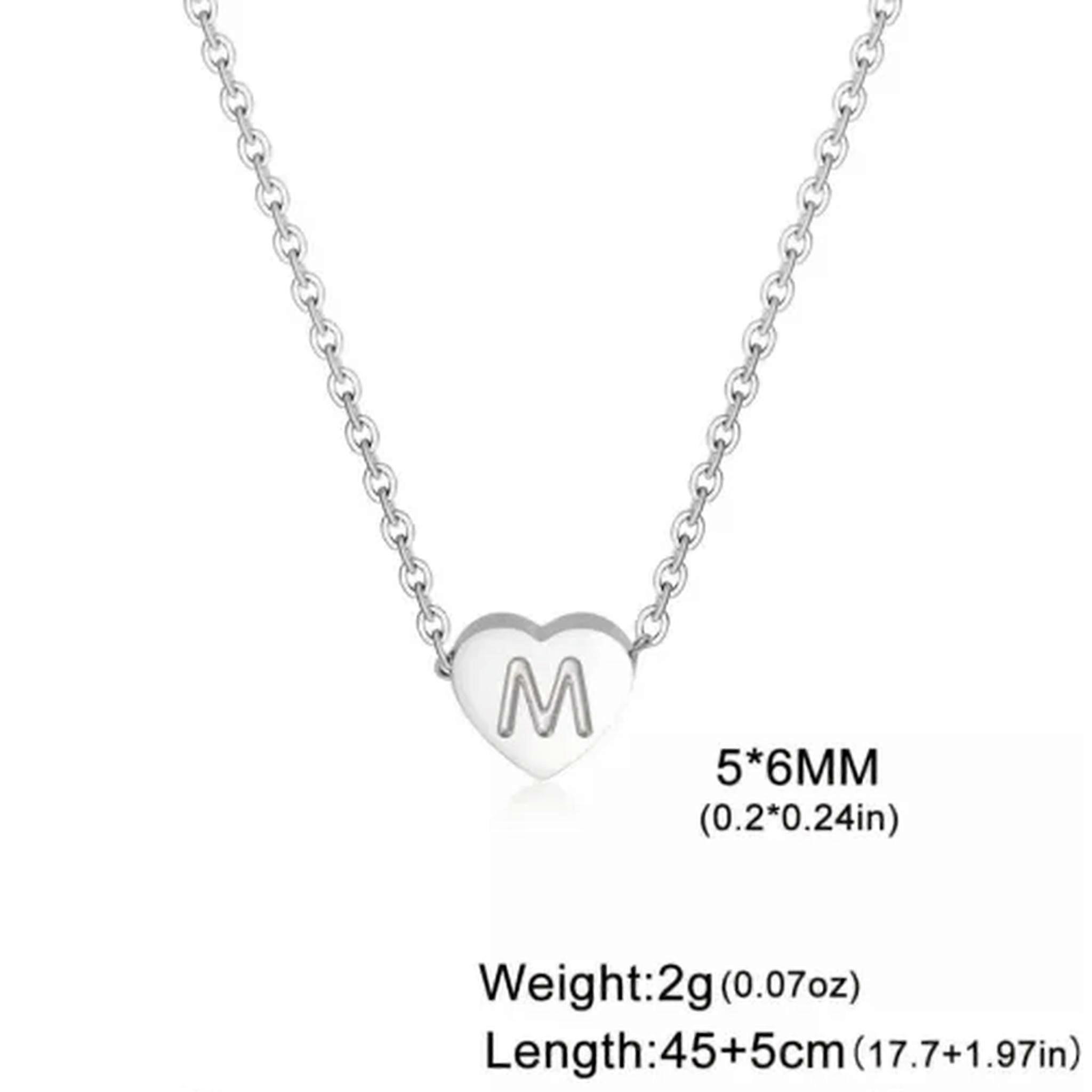 RSAMD Initial Letter Heart Pendant Necklaces Stainless Steel Neck Chain Choker Jewelry-45-50cm-Steel color-N
