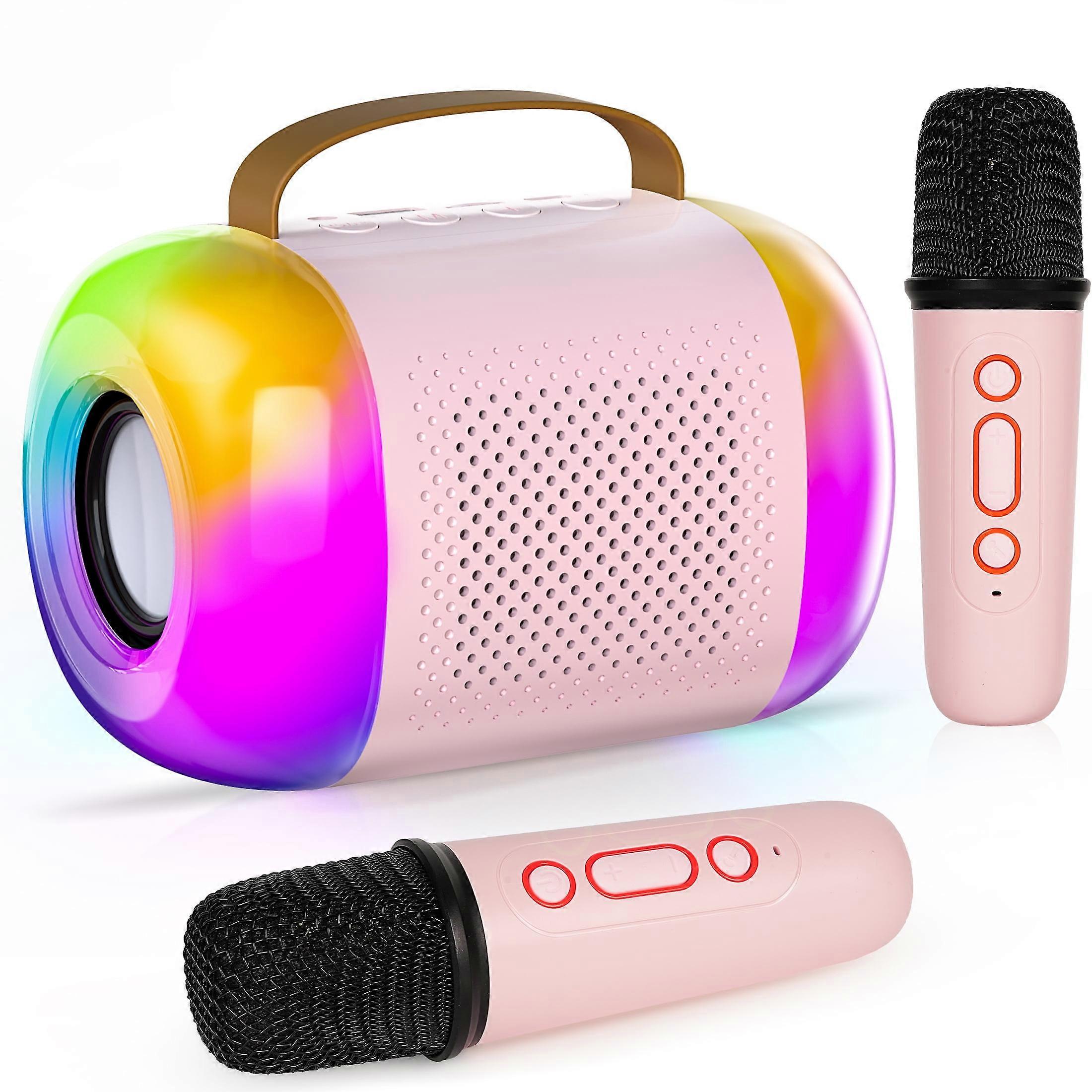 Mini Karaoke Machine for Girls with 2 Wireless Mics & LED Light, Portable Singing Toy for Kids 3-12, Pink, Compatible with Bluetooth