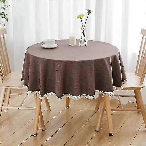 Round solid color tablecloth with lace in cotton and linen for wedding dining room decoration (TC)