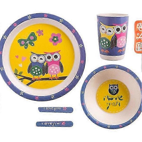 Creative New Bamboo Fiber Children's Dinnerware Set Five Piece Set Preschool Baby Round.Owl Five.piece.set.with.box