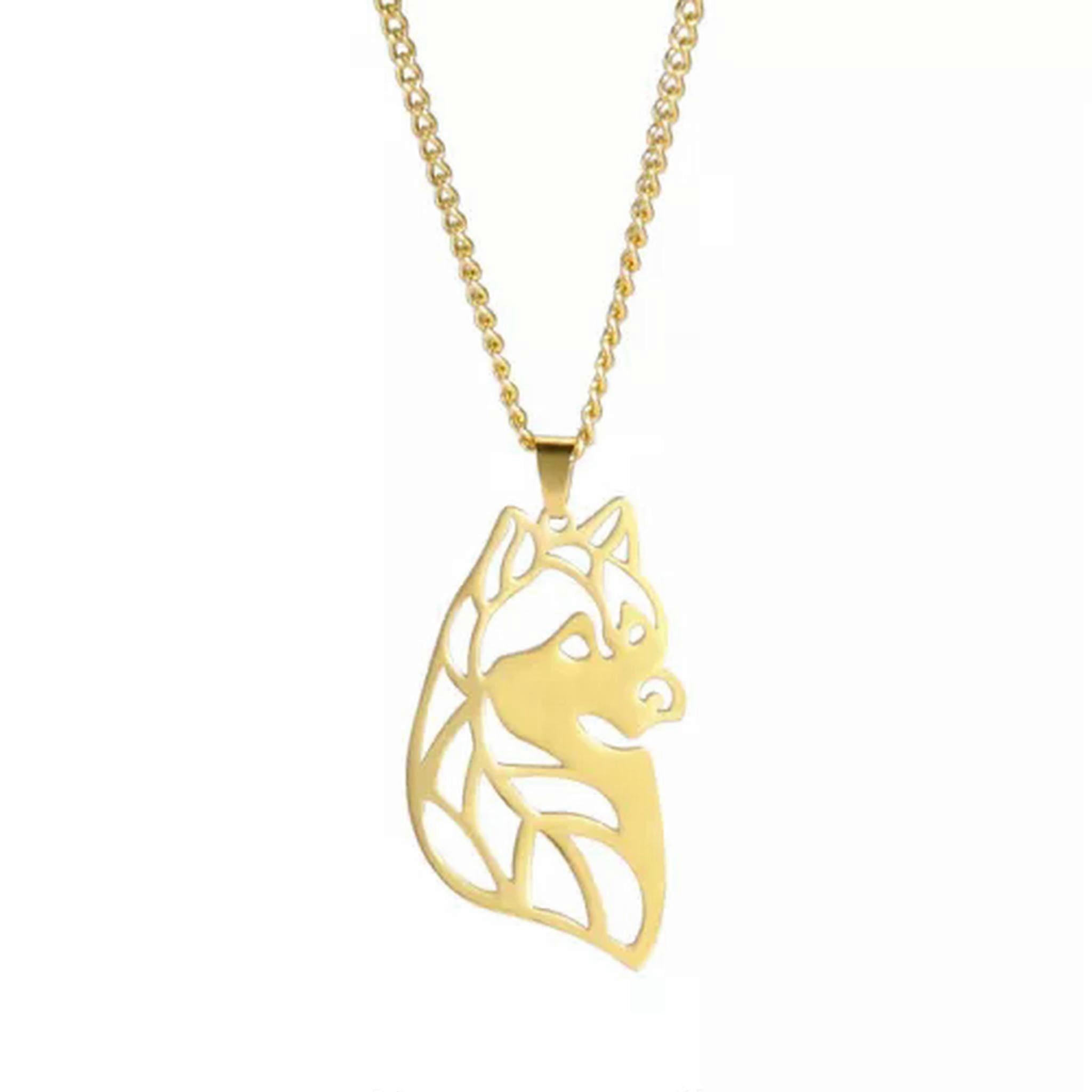 RSAMD Husky Animal Necklace Stainless Steel Pendant Chain Choker Necklace Jewelry Gift-Gold