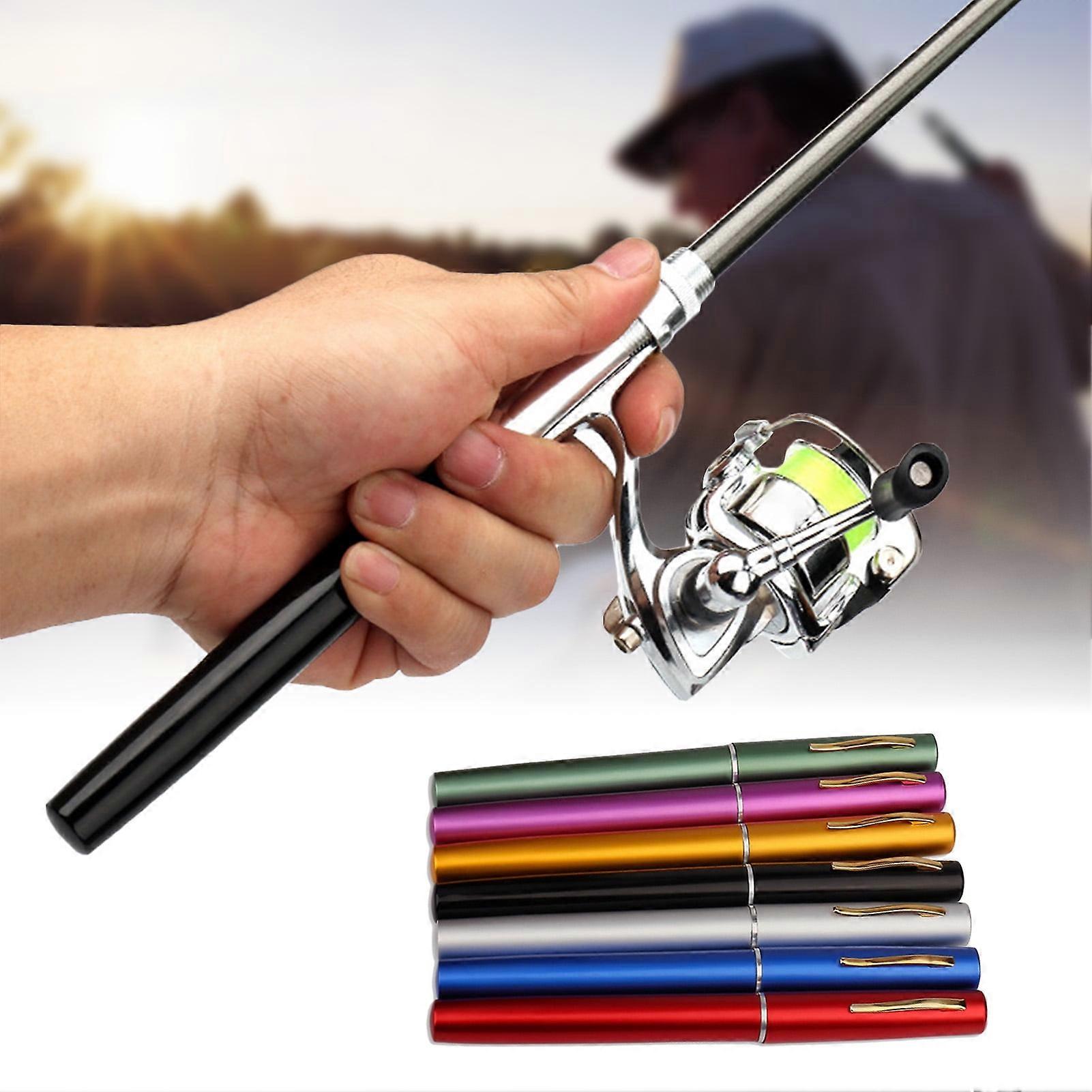 Opolski 1.6m Pen Shape Telescopic Mini Fishing Pole Rod with Metal Spinning Reel Wheel