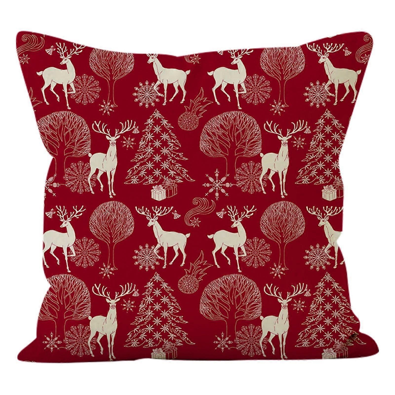 Cailmei Christmas Mouse Linen Pillow Cover Christmas Tree Printed Cushion Cover Border Sofa Decorative Cushion Cover D Free Size