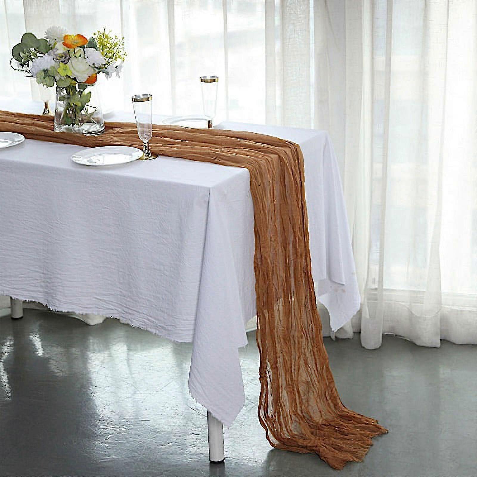 BalsaCircle 10 Feet Taupe Cotton Cheesecloth Gauze Extra Table Runner Home Decorations