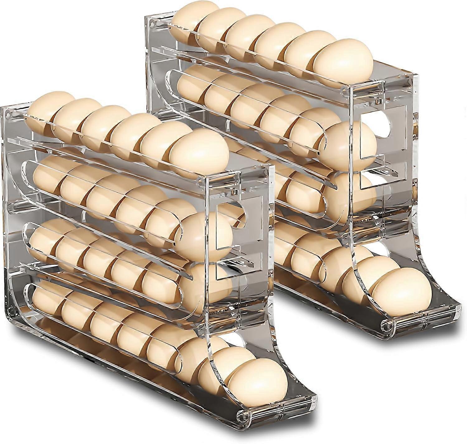 4-Tier Fridge Egg Holder - Auto-Rolling Organizer, Dispenser for 30 Eggs, Space-Saving (White, 1 pc)