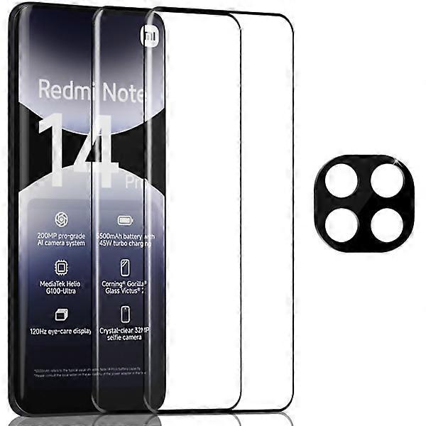 2-Pack compatible with Xiaomi Redmi Note 14 Pro Screen Protector & 1-Pack Lens Protector - Tempered Glass 9H - Super Quality 3D