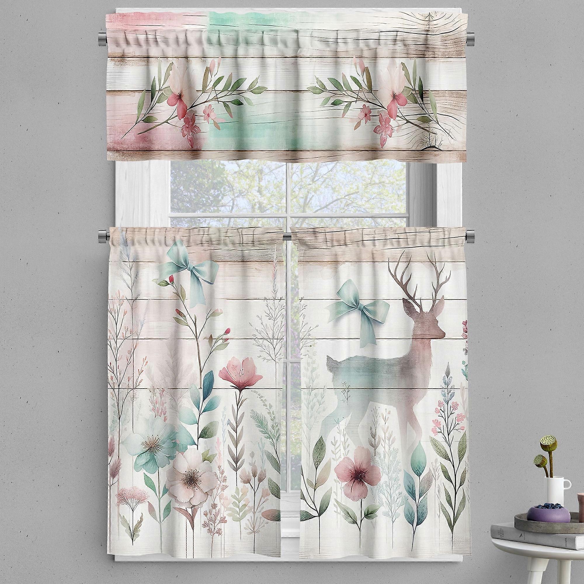 Ambesonne Nature Theme Valance & Curtain 3 Pcs Set, Modern Farmhouse Deer, 55"x24", Pale Rose Seafoam