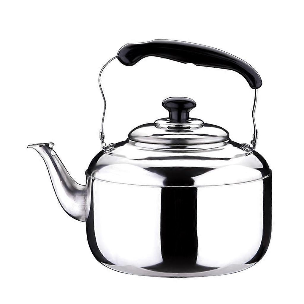 Description: PP grooved handle, anti-slip and anti-hot Durable Stainless Steel,Lightweight, portable, easy and safe to use It is loudly whistle when the water is ready. You can open the cover and it without making noise. All top available:The whistle kettle works with gas, electric and most induction tops. Can be used to boil water and make coffee, milk and tea, and good for home, kitchen, camping, picnic, travel and so on Specification: Material: Stainless steel Color: Capacity: 4L, 5L, 6L Size Chart: 4L Size: Approx. Total Height 25cm/9.84inch, Kettle Dia. 14.6cm/5.75inch, Base Dia. 16cm/6.30inch, Mouth Dia. 11.2cm/4.41inch 5L Size: Approx. Total .8cm/10.94inch, Kettle Dia. 16cm/6.30inch, Base Dia. 18.5cm/7.28inch, Mouth Dia. 12cm/4.72inch 6L Size: Approx. Total Height 28.3cm/11.14inch, Kettle Dia. 16.6cm/6.54inch, Base Dia. 20.5cm/8.07inch, Mouth Dia. 13.8cm/5.43inch Package Includes: 1 Piece Whistling Kettle Note: Please allow slight difference due to manual measurement. Color maybe slightly different since different monitor. Thank you. Due to long distance transportation, the packing box may be damaged by certain extrusion.Buy carefully if you mind Customer satisfaction is our primary concern. If the product is somehow cracked or broken during shipping, please feel free to contact us. We will try our best to give you a satisfactory solution. Stainless Steel Tea Kettle Teakettles Camping Teapot